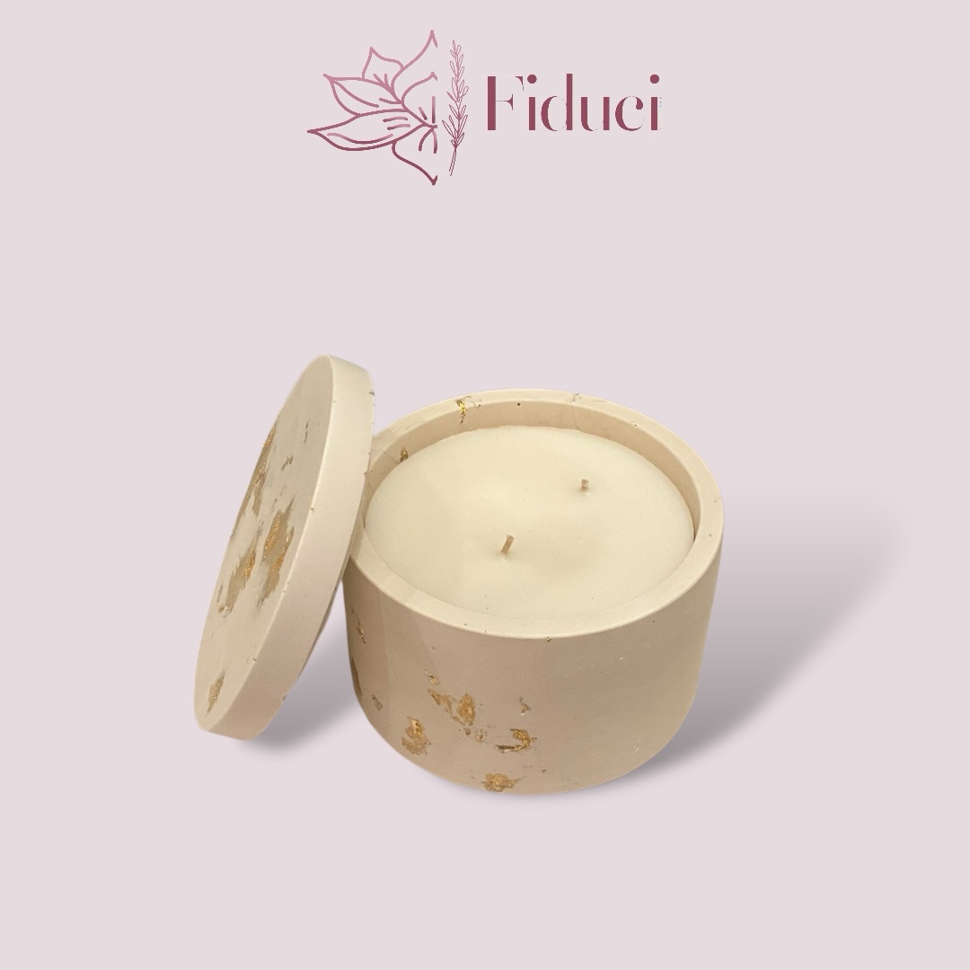 Het jesmonite potje wordt met de hand gegoten en afgewerkt. Kleine variaties in kleur en textuur maken elke kaars uniek en benadrukken het ambachtelijke karakter. De maat M is ideaal als centraal element op een tafel, altaar of in een stille hoek waar je bewust wil vertragen.